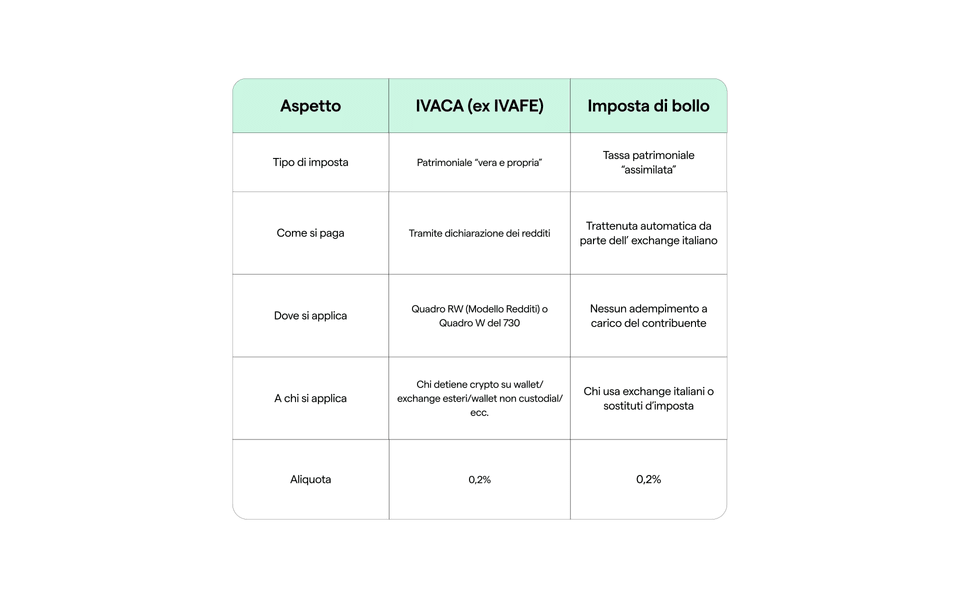→ Dovrai calcolare e versare tu l’IVACA, inserendola nel Quadro RW della dichiarazione dei redditi. - Hai crypto su piattaforme italiane e estere